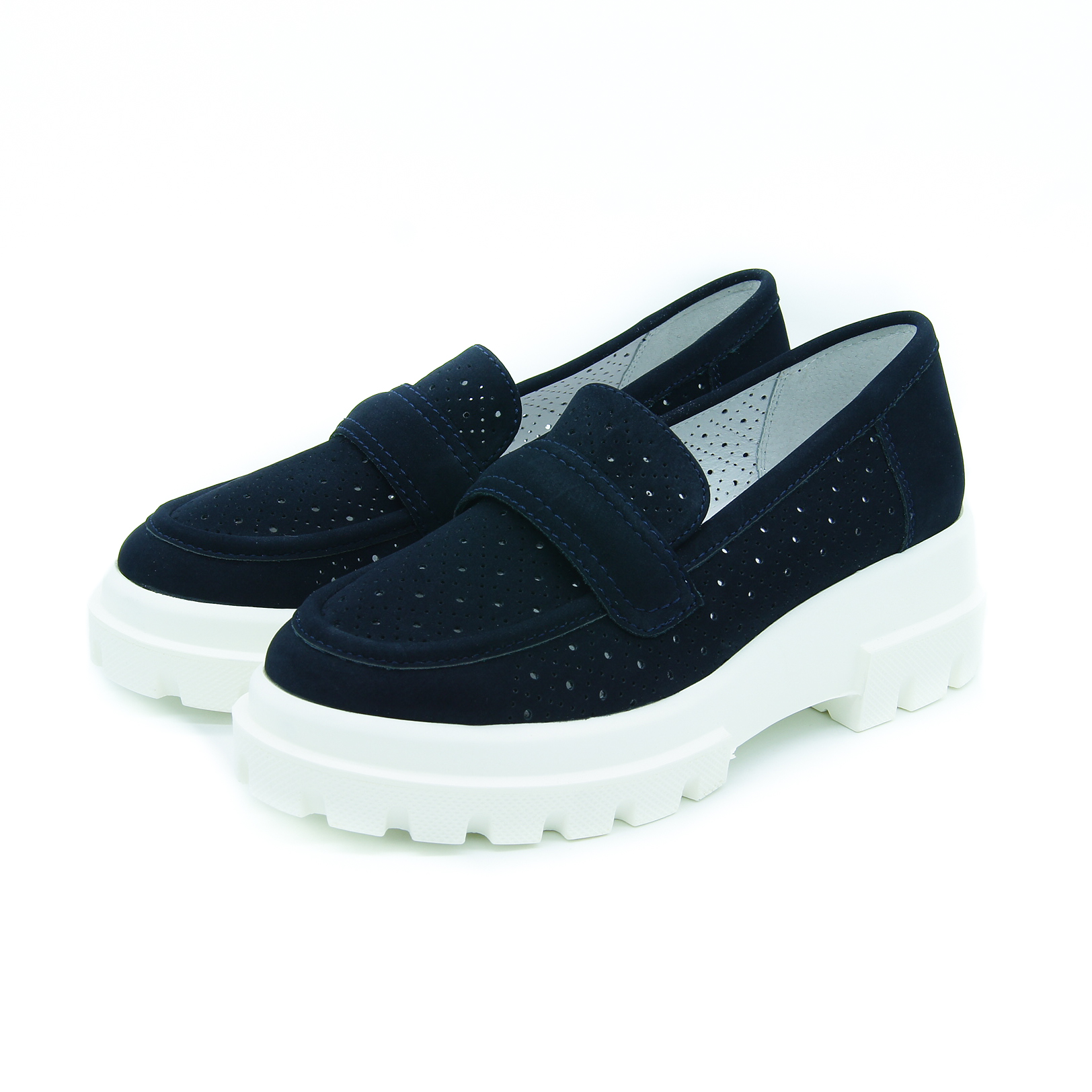 облегченные туфли со сквозной перфорацией в темно-синем цвете. хорошо подходят для сменной обуви.